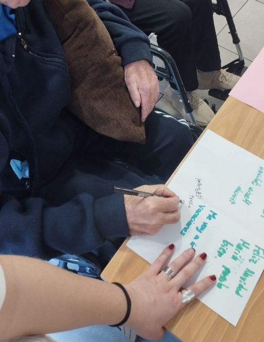 Pasaden abenduaren 18an DBH3ko ikasleak DomusVi Arbidea nagusien erresidentziara joan ziren “Eskutitz ezkutua” jarduera aurrera eramatera. Ikasleek gabonetako postalak egiteko materiala eraman zuten, eta agureei papertxoan tokatu zitzaien kideari postala egiten lagundu zieten.